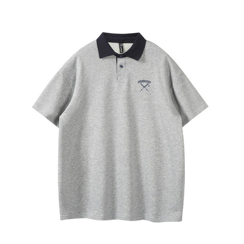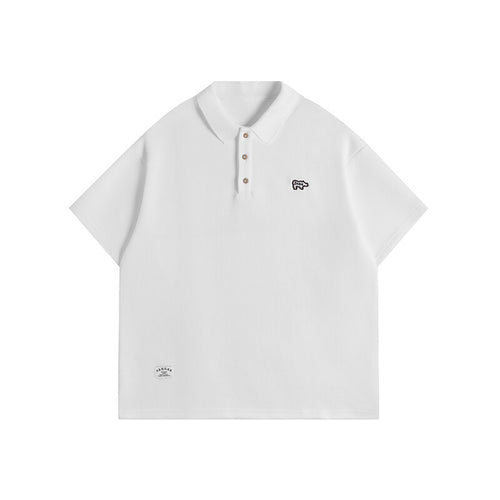 Minimally embroidered polo shirt for men with loose collar and short sleeves