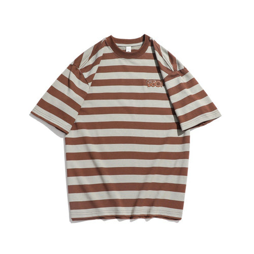 Color blocked polo shirt with loose embroidered collar and short sleeves
